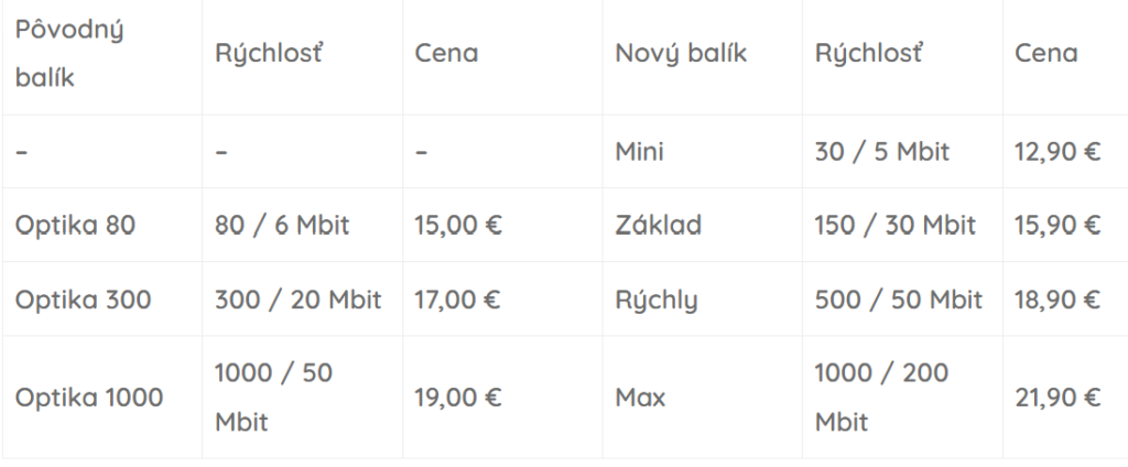 Zákazníci budú presunutí na nové balíky s vyššou rýchlosťou internetu.